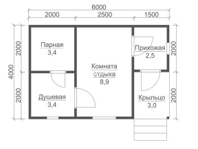 Проект 14 бани с полностью соответствует требованиям к банным сооружениям, включающим неизменные функциональность и эстетичность. Площадь одноэтажной бани, равная 6х4 м., предусматривает оптимальное расположение внутренних помещений, гарантирующее комфортный отдых владельца и его гостей.