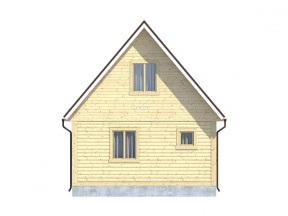 полутораэтажный дом комплектуется утепленной входной дверью, филенчатыми межкомнатными дверьми и двойными зимними окнами. Подходящий для проживания в любой сезон, дом укрыт от непогоды двускатной крышей, крытой ондулином одной из понравившихся расцветок.