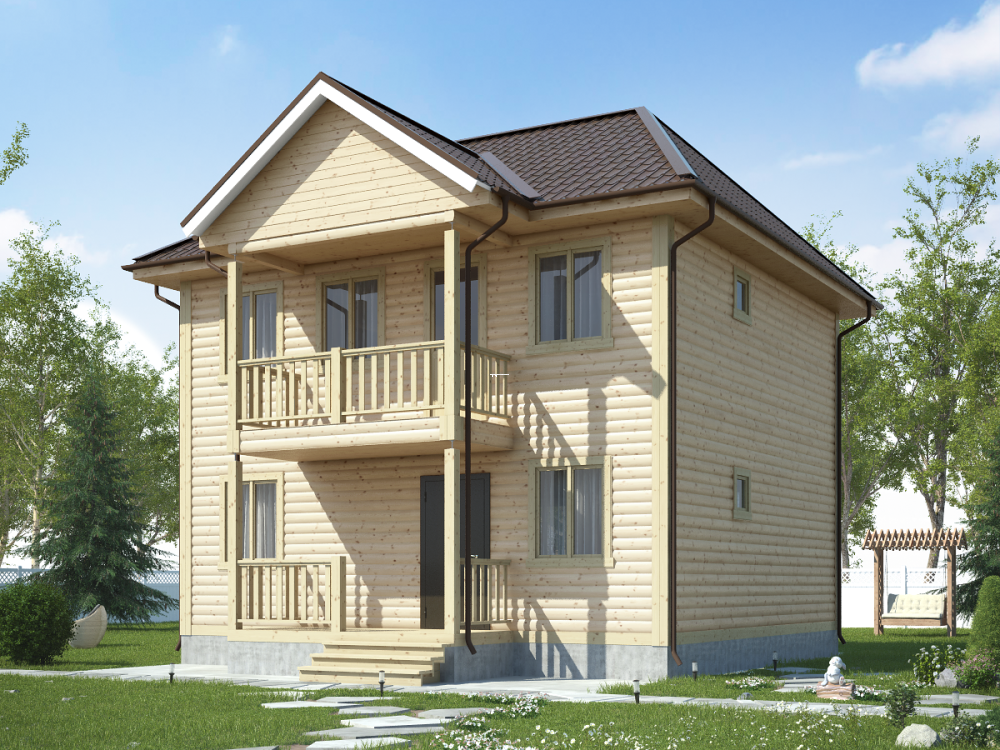 Проект 143 – это привычная, проверенная временем и подтвердившая свою эффективность конструкция дома с балконом, разработанная компанией «Дачи из бруса», имеющей более чем 15-ти летний опыт создания, сборки и установки сооружений из натуральной древесины. Простота и доступность модели, занимающей площадь 110 кв.м. (8х7,5 м.), способствуют росту популярности среди владельцев дачных участков, признающих справедливость неизменных характеристик, включающих: